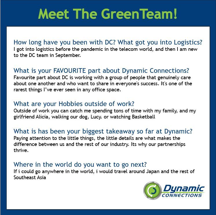 Gagandeep Singh is one of our newest hires at Dynamic Connections and we love the strides he is already making with the Solutions team. Come join us in another week of Meet the GreenTeam!
